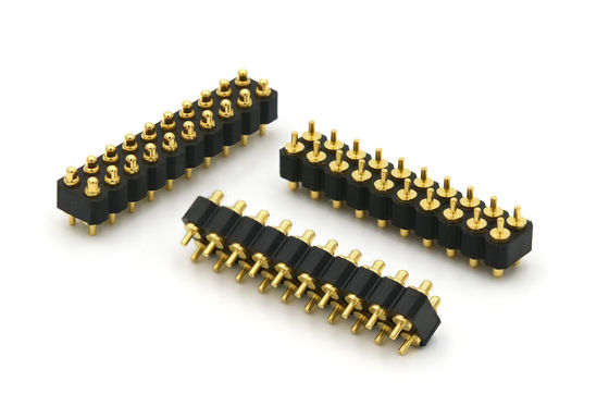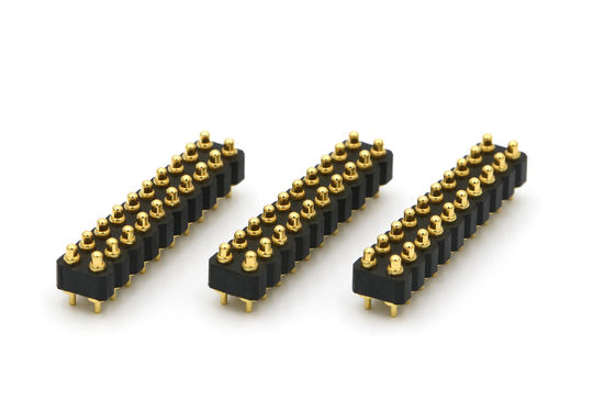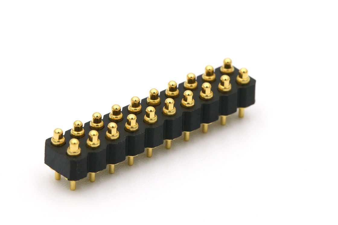 สายสอง 2 * 10pin DIP สปริงโหลดเชื่อมต่อทองแดงทองแดง UPE พัฒนา 2.0mm pitch มาตรฐานชายและหญิง 2pin-40pin Pogo pin เชื่อมต่อกับ SMT / DIP / มุมขวา / Solder Cup