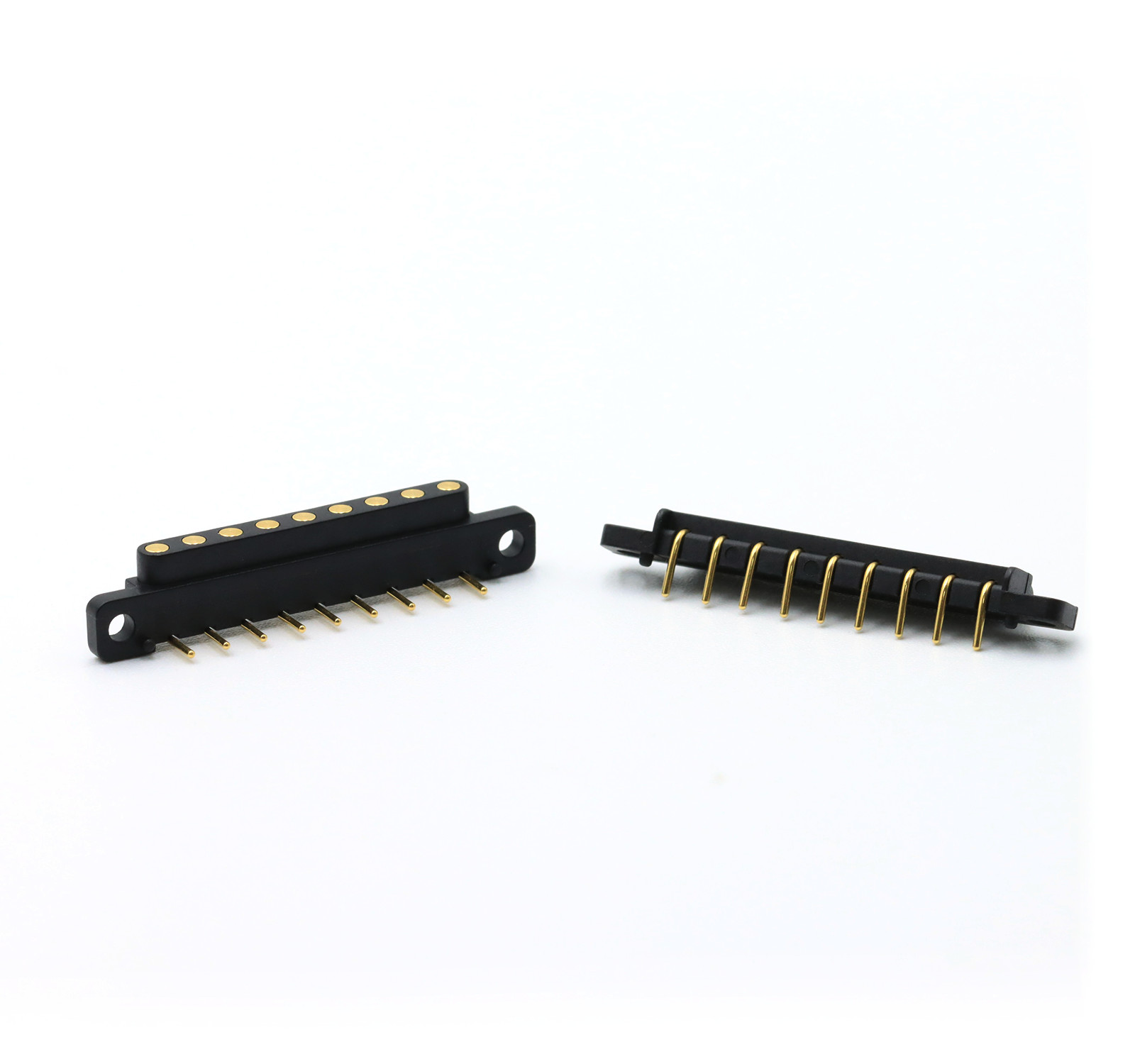 9Pin มุมขวา POGO Pin เพศชาย เพศหญิง Pogo Pin เครื่องเชื่อมกับ 2.54mm pitch