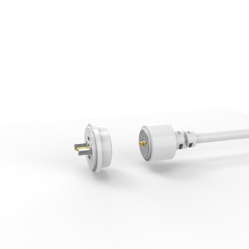 ขั้วต่อสายชาร์จแม่เหล็กสีขาวทรงกลมสำหรับถ้วยน้ำอัจฉริยะ ขั้วต่อสายแม่เหล็กมีข้อดีคือการดูดซับอัตโนมัติ ใช้งานง่าย หมุด Pogo มีการนำไฟฟ้าที่ดี ไม่กัดกร่อนง่ายในสภาพแวดล้อมที่รุนแรง